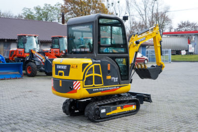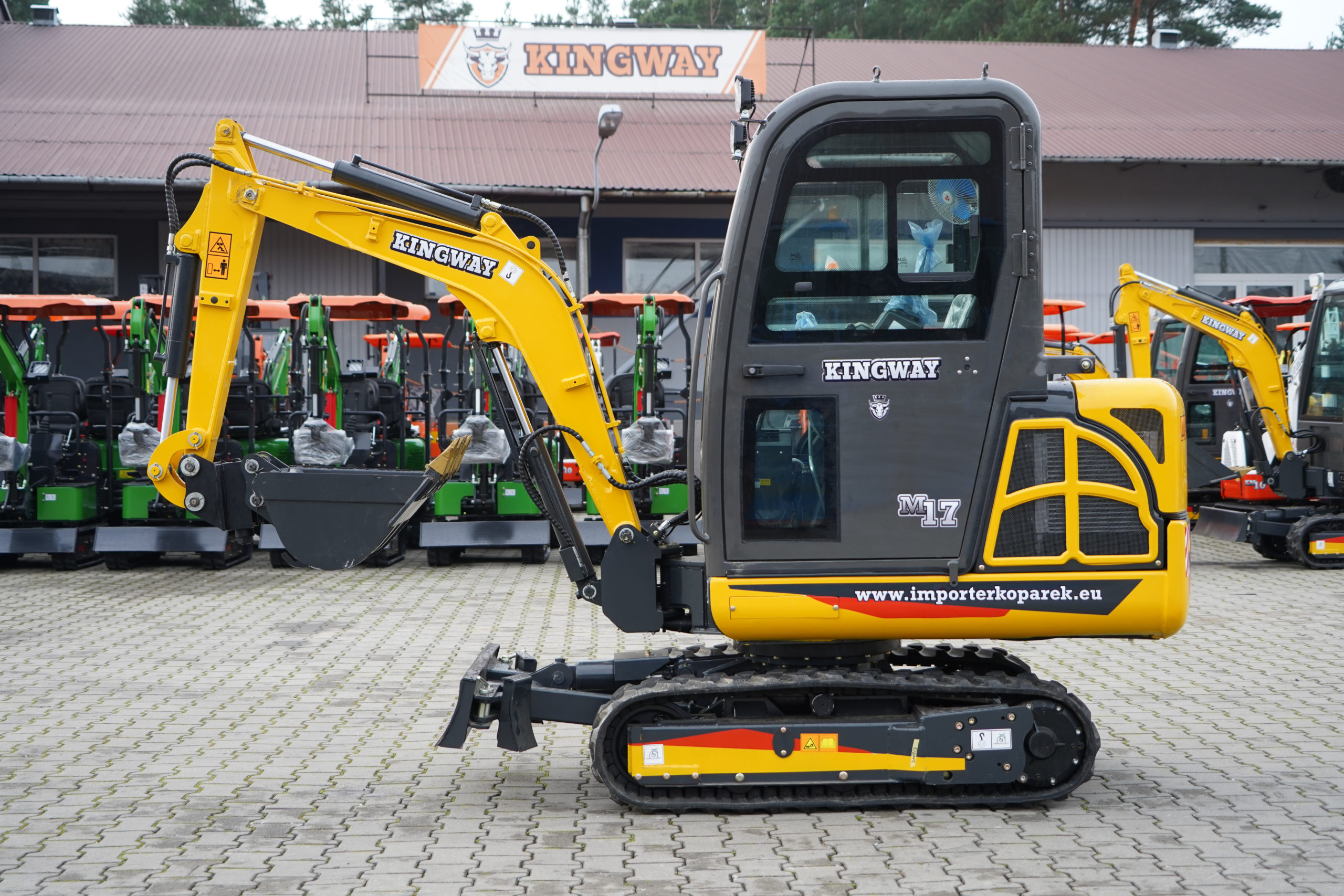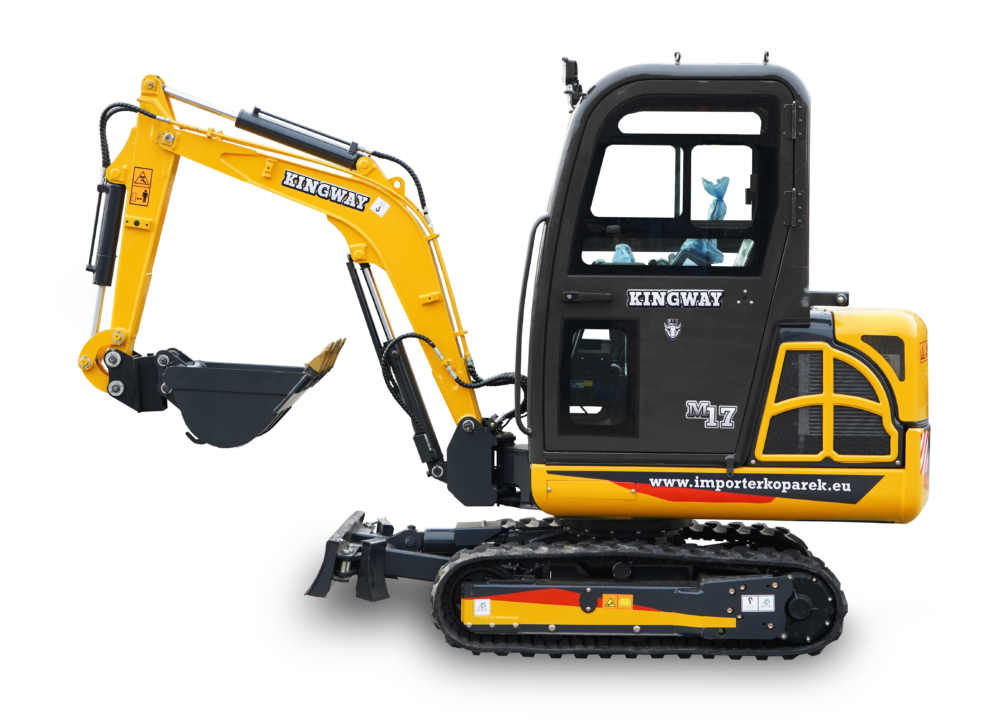 Wir garantieren auch den Service der Geräte nach der Garantie. Minibagger werden auf Basis und unter Aufsicht europäischer Techniker hergestellt. Die Ausrüstung ist stark strukturiert und kann unter allen Bedingungen eingesetzt werden. Das Modell M17 verfügt außerdem über einen Torsionsarm und ausziehbare Ketten. Die verglaste Kabine bietet hervorragende Sicht. Es hat zwei seitliche Schiebefenster und eine Windschutzscheibe. Der Komfort wird auch durch einen bequemen Sessel mit zwei Armlehnen erhöht. Ausgewählte Modelle verfügen über eine zusätzliche Heizung.