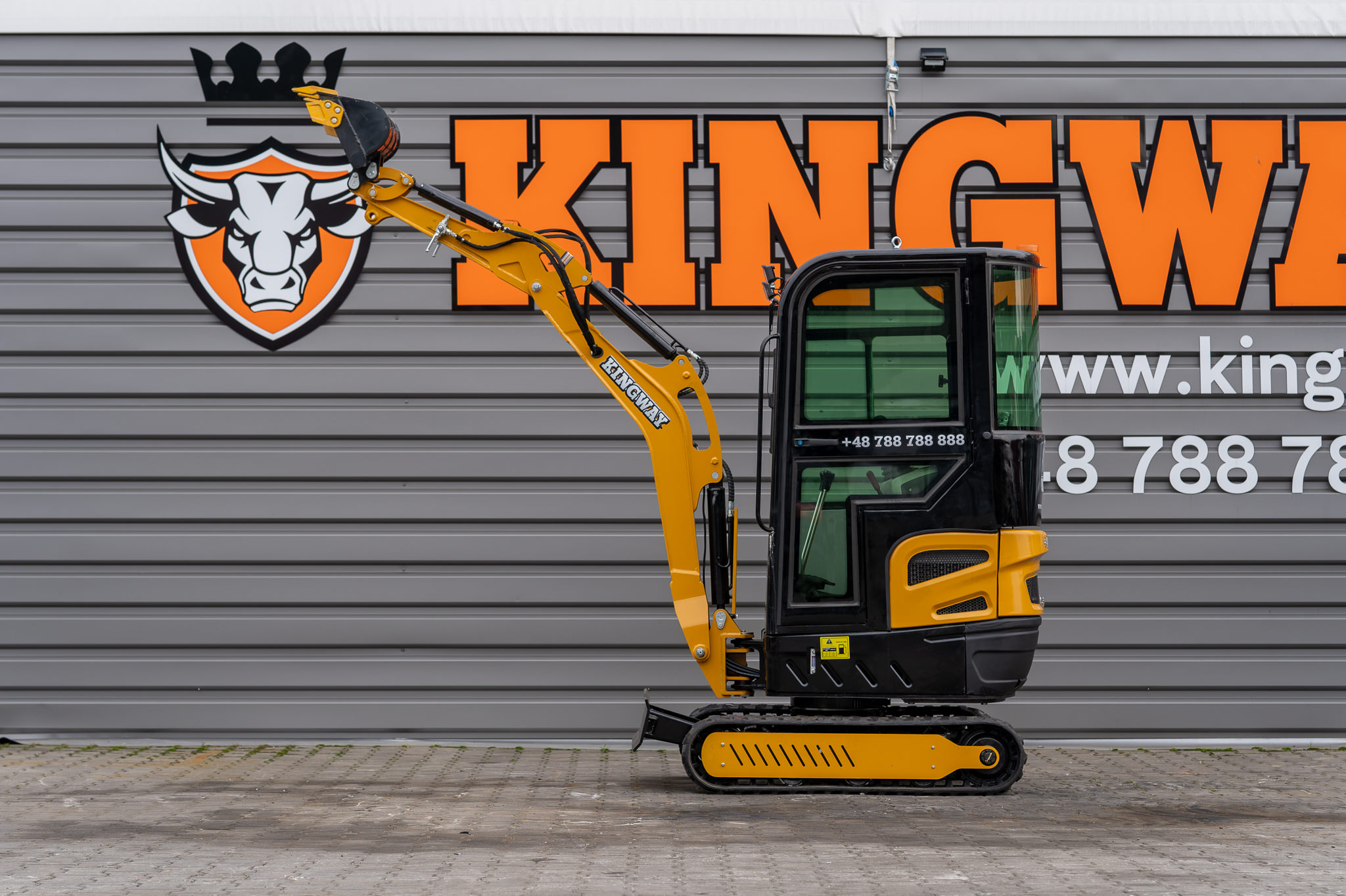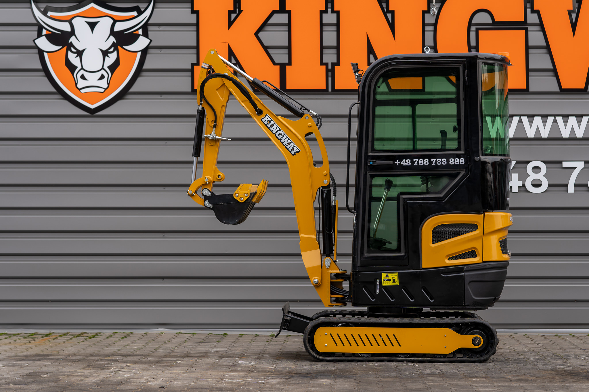 YAMA H13 K - Minibagger auf Raupenketten. Moderner, professionell und langlebig. Das Modell YAMA H13 K ist die ideale Ausrüstung für die anspruchsvollsten Bau-, Elektro-, Sanitär-, Renovierungs- und Dienstleistungsunternehmen in ähnlichen Branchen. Das Modell YAMA H13 K ist zusätzlich mit einem Schwenkarm ausgestattet, der die Arbeit in engen Räumen erheblich erleichtert. Wir garantieren auch einen Ausrüstungsservice nach der Garantiezeit. Minibagger werden auf der Grundlage und unter der Aufsicht europäischer Techniker hergestellt. Die Glaskabine ermöglicht ein sicheres und komfortables Arbeiten. Die Ausrüstung besteht aus einer stabilen Struktur und kann unter allen Bedingungen eingesetzt werden.