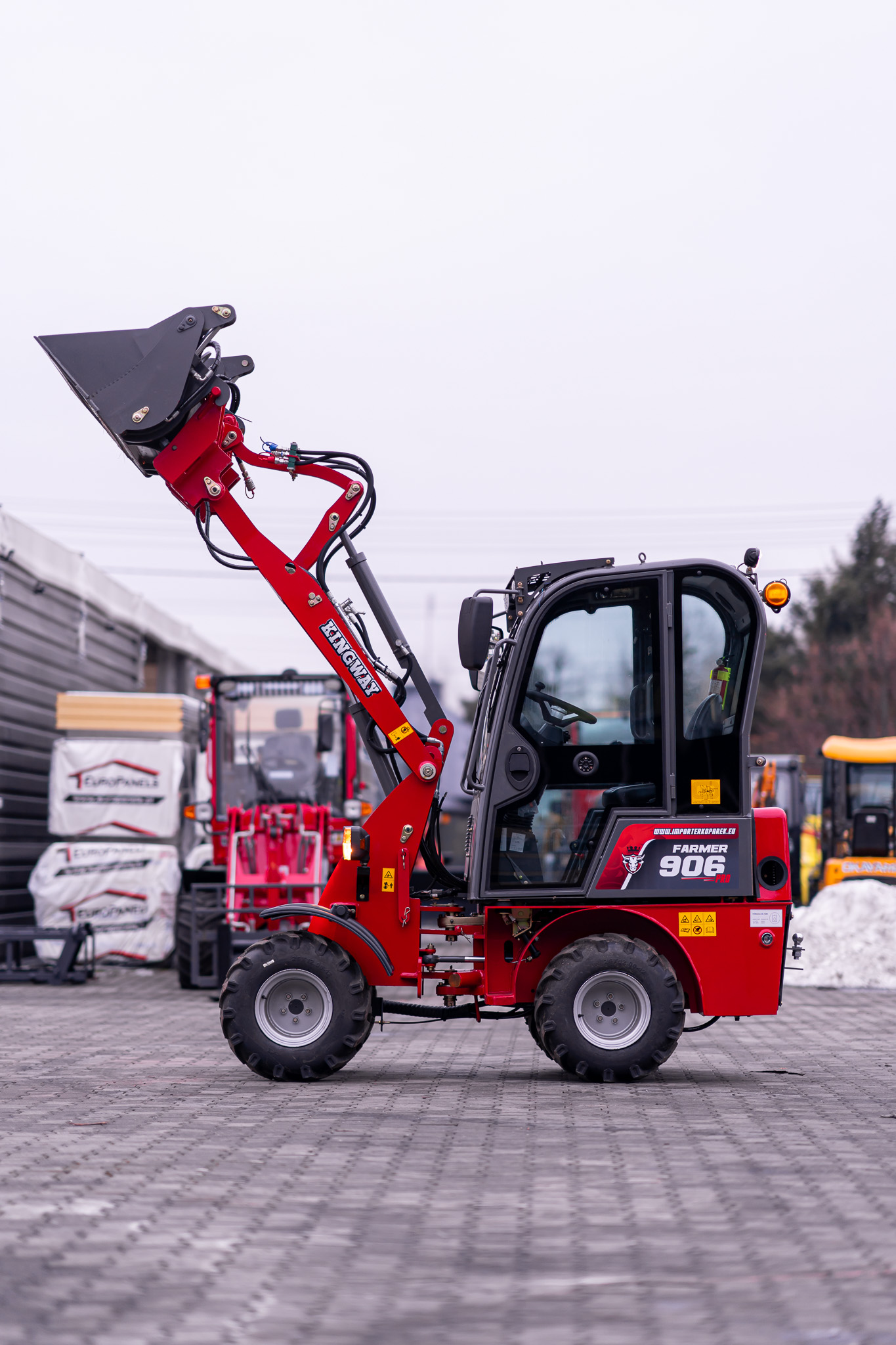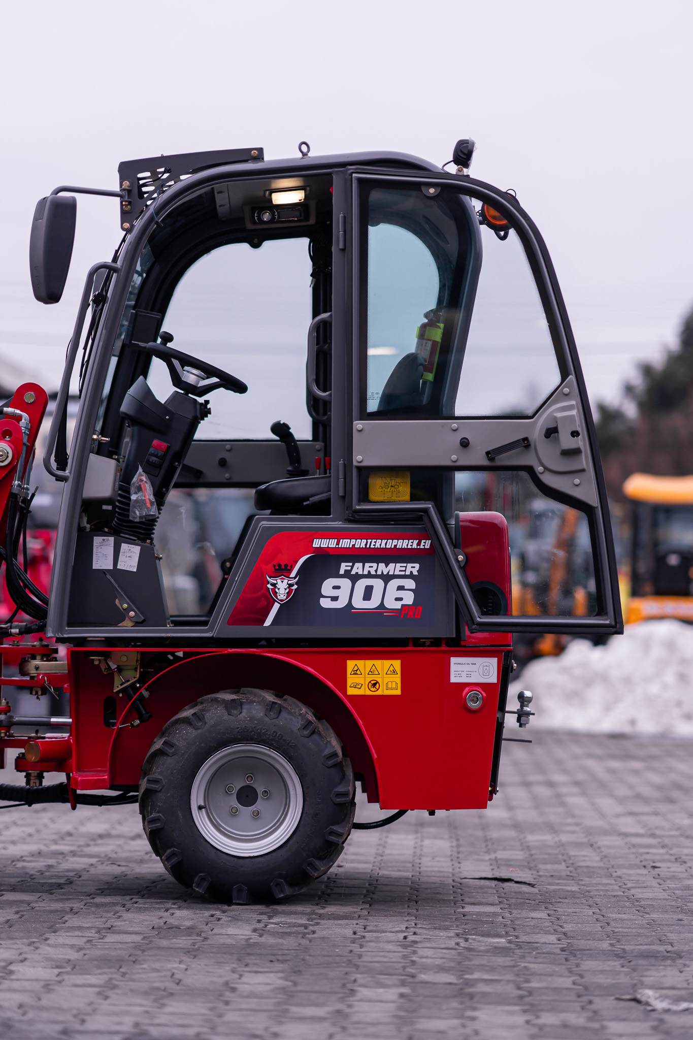 Modernes Radlader FARMER 906 PRO – professionell und langlebig. Das Modell ist die ideale Ausrüstung für Landwirtschafts-, Bau-, Elektro-, Sanitär-, Renovierungsunternehmen und Unternehmen, die Dienstleistungen in ähnlichen Branchen anbieten. Wir garantieren auch den Geräteservice nach Ablauf der Garantie. LADEGERÄTE werden auf Basis und unter der Aufsicht europäischer Techniker hergestellt. Die Ausrüstung besteht aus einer starken Struktur und kann unter allen Bedingungen eingesetzt werden. Eine komfortable Glaskabine ermöglicht sicheres und komfortables Arbeiten.