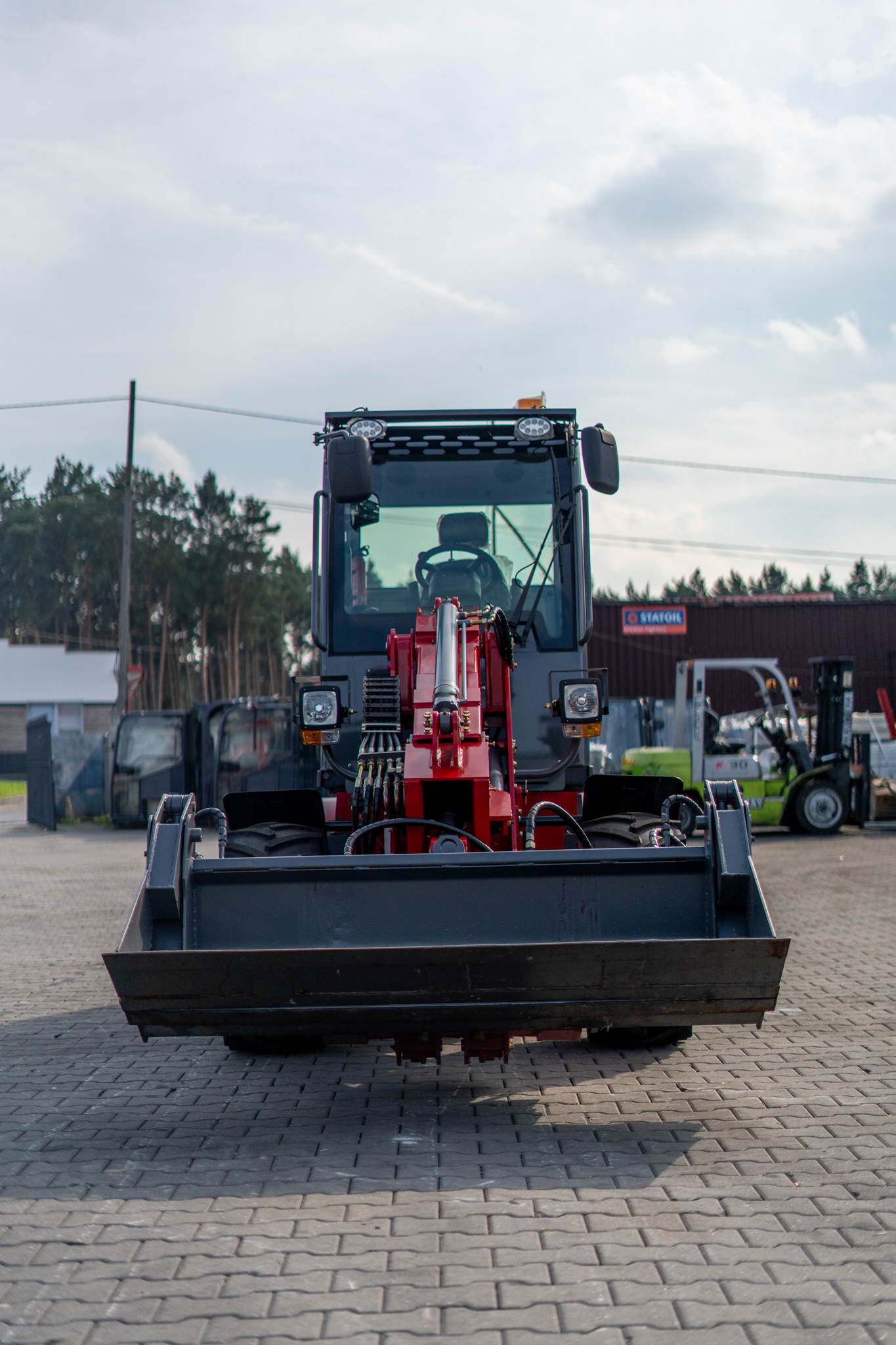 Moderner Teleskoplader 811T – professionell und langlebig. Das Modell 811T ist die ideale Ausrüstung für die anspruchsvollsten Bau-, Elektro-, Sanitär-, Renovierungs- und Dienstleistungsunternehmen in ähnlichen Branchen. Wir garantieren auch den Geräteservice nach Ablauf der Garantie. LADEGERÄTE werden auf Basis und unter der Aufsicht europäischer Techniker hergestellt. Die Ausrüstung besteht aus einer starken Struktur und kann unter allen Bedingungen eingesetzt werden. Eine komfortable Glaskabine ermöglicht sicheres und komfortables Arbeiten. Die Hubhöhe der Maschine beträgt bis zu 3,5m!
